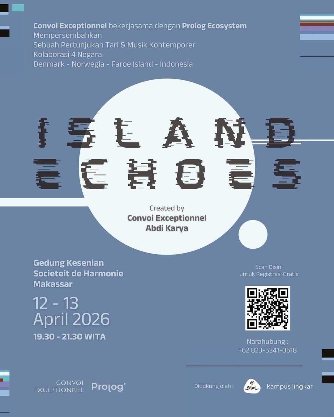 Island Echoes adalah sebuah pentas kolaborasi internasional yang mempertemukan seniman dari Denmark, Norwegia, Kepulauan Faroe, dan Indonesia (Sulawesi Selatan). Island Echoes – Tubuh, Tanah dan Laut adalah proyek seni pertunjukan multidisiplin yang diproduksi oleh Convoi Exceptionnel bersama kolektif Prolog Ecosystem. Proyek ini terinspirasi dari pertemuan lintas budaya antar negara kepulauan dan keberagaman sejarah serta identitas…